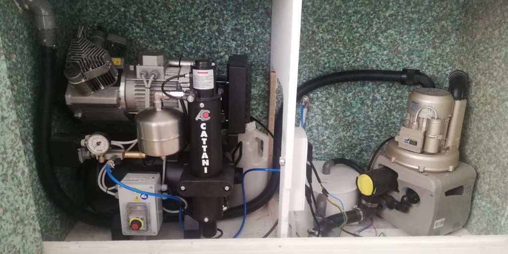 Unidad dental con kit multimedia, separador de amalgama, Kit Pack rotatorio-turbina-micromotor y contra-ángulo
